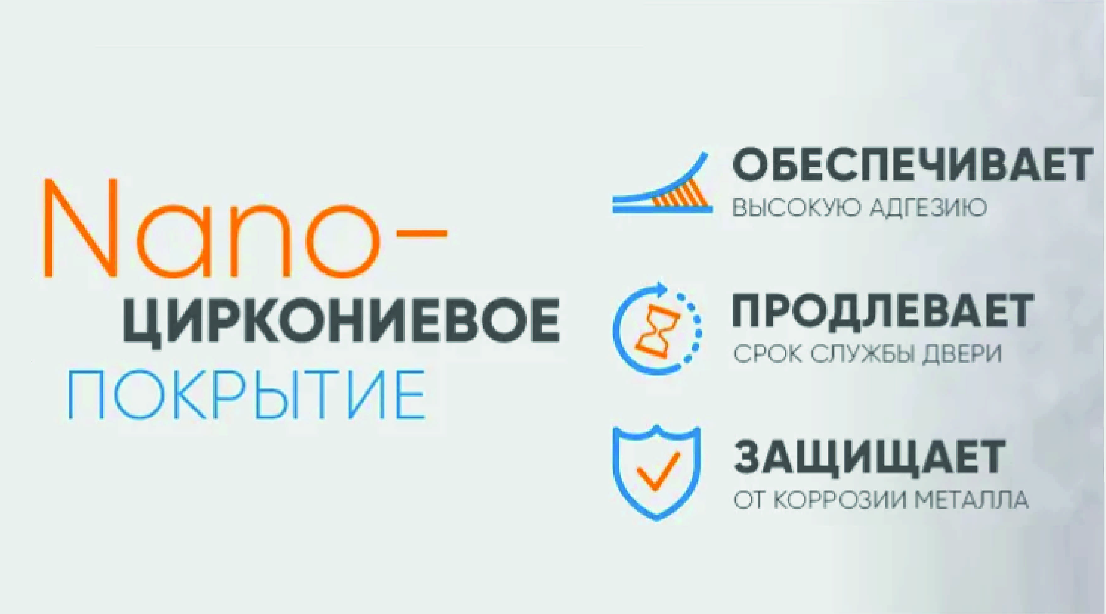 Ответ: Нано-циркониевое покрытие обеспечивает дополнительную устойчивость к коррозии, более высокую адгезию с полимерно-порошковым покрытием, продлевает срок службы двери.